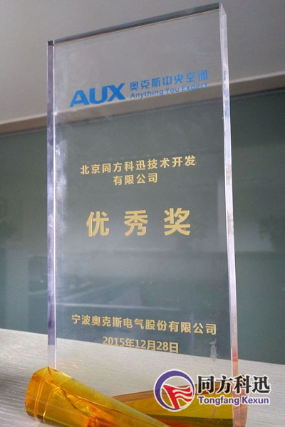 會上,北京同方科迅技術開發(fā)有限公司15年度銷售業(yè)績得到了奧克斯的充分認可,獲得了現(xiàn)場頒發(fā)的年度優(yōu)秀獎獎杯。