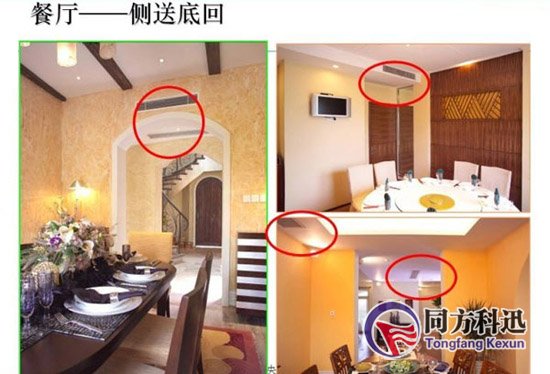 上回風(fēng)下回風(fēng)方式也是一種基本的方式。送風(fēng)口安裝在房間上面,回風(fēng)口安裝在房間的底部。冷暖風(fēng)從房間上方吹出,回風(fēng)口將下方較冷的空氣排除,從而保證房間能夠較快制冷制暖。上回風(fēng)下回風(fēng)能夠解決室內(nèi)房間溫差較大的問(wèn)題,保證房間溫度均勻舒適,但是室內(nèi)機(jī)安裝在墻壁夾層之內(nèi),不適用于面積較小的房間。特殊需要注意的是,回風(fēng)口由于安裝在下層,選擇安裝位置時(shí)需要保證人員流動(dòng)較少區(qū)域和沒(méi)有障礙。