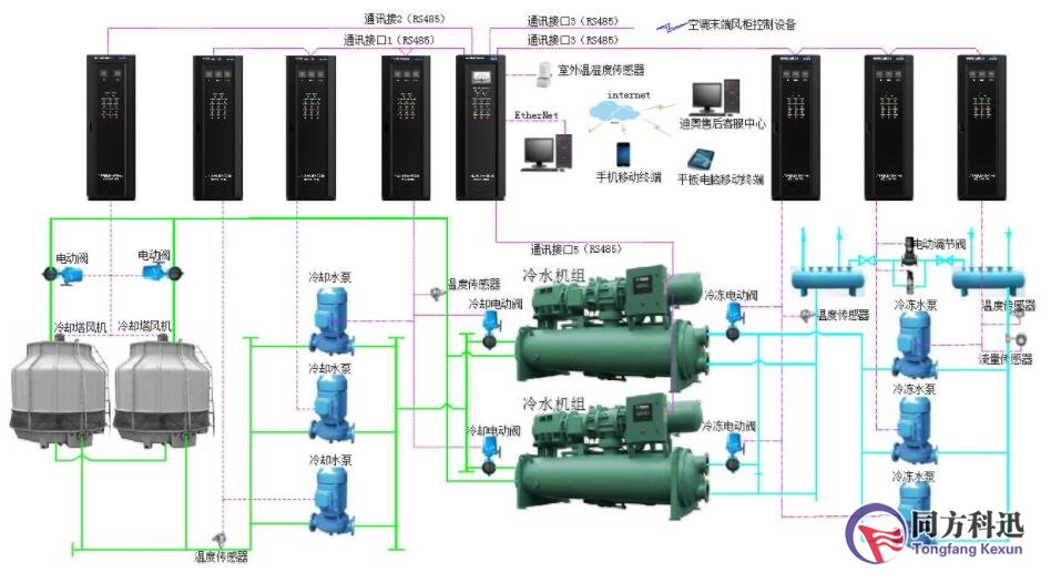 一次水泵為定頻,末端的二次水泵中進(jìn)行單獨(dú)變頻調(diào)節(jié)。