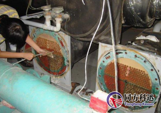 中央空調(diào)長期使用后,內(nèi)部環(huán)境受灰塵,病毒,及潮濕的影響。對空調(diào)設(shè)備的正常工作影響越來越嚴(yán)重。隨著空調(diào)的運(yùn)行,循環(huán)水的濃縮和溫度變化,水中各種離子濃度積超過其本身的濃度積時(shí),就會(huì)生成沉淀,形成水垢,而水中溶解氧的存在和其它因素的聯(lián)合作用又易引起設(shè)備的腐蝕。循環(huán)水中營養(yǎng)物的不斷富集,又為藻類和細(xì)菌的滋生提供了充足的養(yǎng)分,形成生物粘泥。這些水垢、粘泥及腐蝕物會(huì)導(dǎo)致?lián)Q熱器熱交換效率降低、制冷量下降;使循環(huán)水量減少、管道堵塞,冷量輸送不暢,給中央空調(diào)的安全運(yùn)行帶來嚴(yán)重的危害。因此,有必要對中央空調(diào)的水系統(tǒng)進(jìn)行清洗。