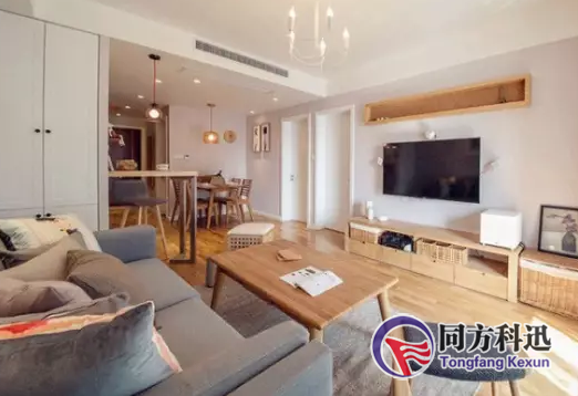3、如果客、餐廳在同一面,所以將出風(fēng)口做在另一面墻的吊頂上,可以同時(shí)滿足兩個(gè)使用環(huán)境。